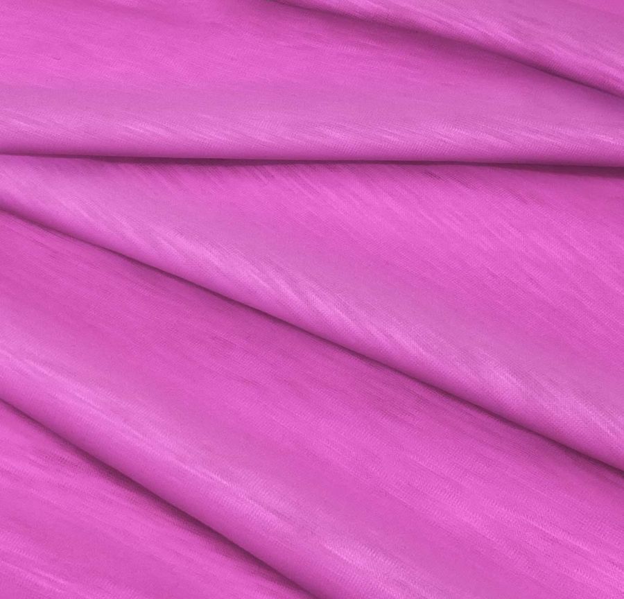 La tela base es el Punto Camiseta Jaspeado - Dubái, de composición 100% POLIÉSTER, con un gramaje de 135 gr/m2 y un ancho de la tela de 160 cm. El color liso impreso es Rosa Claro Oscuro, con un CMYK de 15 70 0 0. El color secundario es un tono rosa fucsia con un toque de púrpura, que combina perfectamente con colores neutros como el gris o el negro, así como con tonalidades claras como el blanco o el beige.