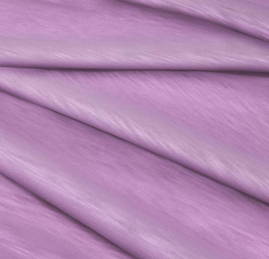 La tela base es el Punto Camiseta Jaspeado - Dubái, compuesta al 100% de poliéster, con un gramaje de 135 gr/m2 y un ancho de 160 cm. El color liso impreso es rosa frío, con una combinación de tintas de cian (28) y magenta (55) que produce un tono suave y delicado. Este color secundario jaspeado, con sus tonos suaves, combina bien con tonos pastel como el amarillo, el verde y el azul.