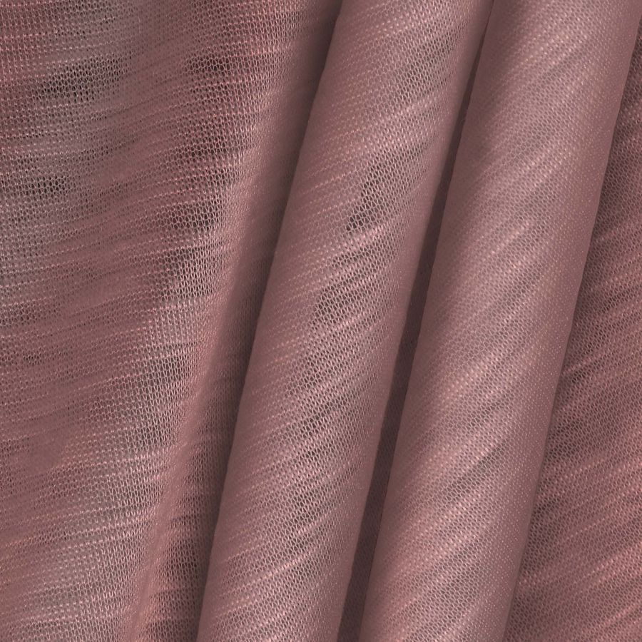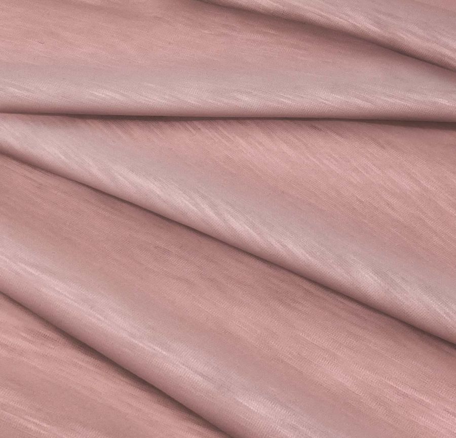 La tela base es el Punto Camiseta Jaspeado - Dubái, compuesta por 100% poliéster, con un gramaje de 135 gr/m2 y un ancho de 160 cm. El color liso impreso combina un Rosa Marrón con un CMYK de 16 49 35 4. Este color secundario evoca la ternura y lo acogedor del rosa junto con la tierra y la resistencia del marrón.
