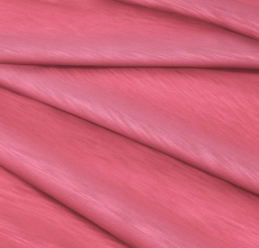 La tela base es el Punto Camiseta Jaspeado - Dubái, de tipo Tela de Punto, compuesta al 100% por poliéster y con un gramaje de 135 gr/m2. Tiene un ancho de 160 cm y se caracteriza por ser elegante, suave al tacto y elástica. El color liso impreso es de tonalidad rosa mate, con una tinta cyan del 0, una tinta magenta del 74, una tinta yellow del 36 y una tinta black del 0, según el CMYK de color. Este tono rosa se caracteriza por ser suave y femenino, transmitiendo una sensación de tranquilidad y armonía. Combina especialmente bien con tonalidades crema, blanco y gris, aunque también puede conformar una muy elegante combinación con el negro.