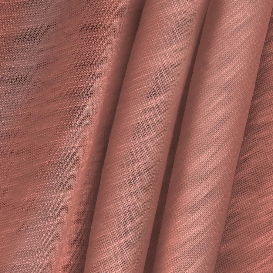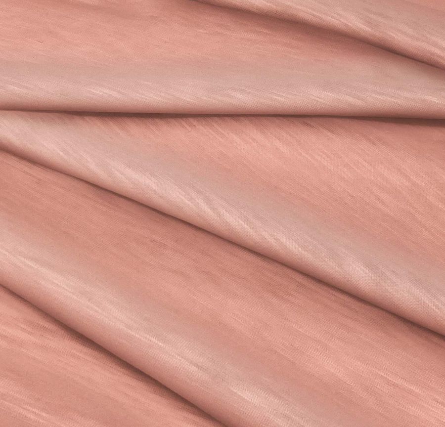 La tela base es el Punto Camiseta Jaspeado - Dubái, una tela de punto que está compuesta por 100% poliéster y tiene un gramaje de 135 gr/m2. Su ancho mide 160 cm y está disponible en un color liso impreso en rosa y melocotón con un valor de 0 53 42 0 en CMYK. Este color secundario es ideal para transmitir una sensación de suavidad y calidez, y se combina especialmente bien con tonos cremosos y neutros.