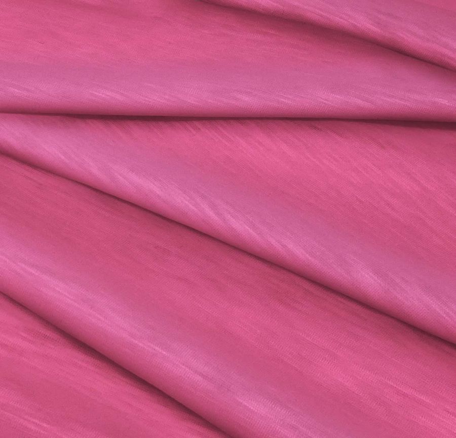 La tela base es la Punto Camiseta Jaspeado - Dubái, una tela de punto de 100% poliéster con un gramaje de 135 gr/m2 y un ancho de 160 cm. En este caso, el color liso impreso es un Rosa oscuro que se obtiene mezclando 2% de cian, 79% de magenta y 24% de amarillo, según el modelo CMYK. Este color secundario tiene un tono cálido y sofisticado que combina bien con tonos tierra y neutros como el beige, además de con tonos más vibrantes como el verde y el azul claro.