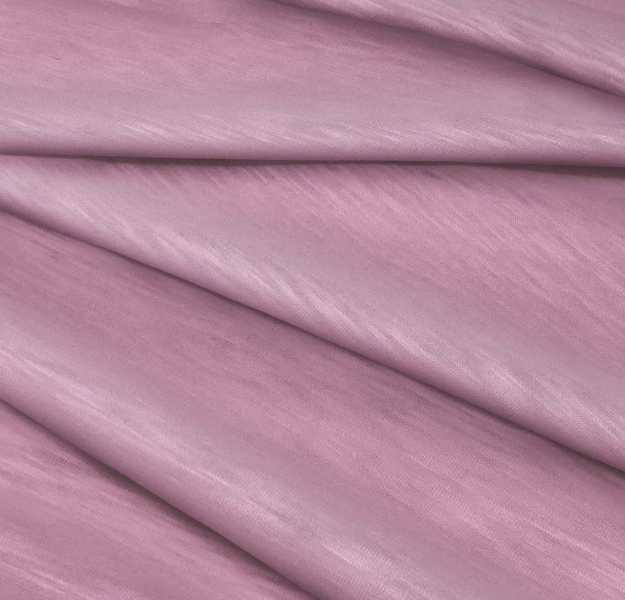 La tela base es la Punto Camiseta Jaspeado - Dubái, de composición 100% poliéster y gramaje de 135 gr/m2. El color liso impreso en la tela es un rosa púrpura, con un CMYK de 24 54 19 2. Este color secundario refleja una sensación de elegancia y sofisticación, combinando tonos de rosa con matices de púrpura, los cuales le aportan más profundidad al color y cierta personalidad en el diseño.