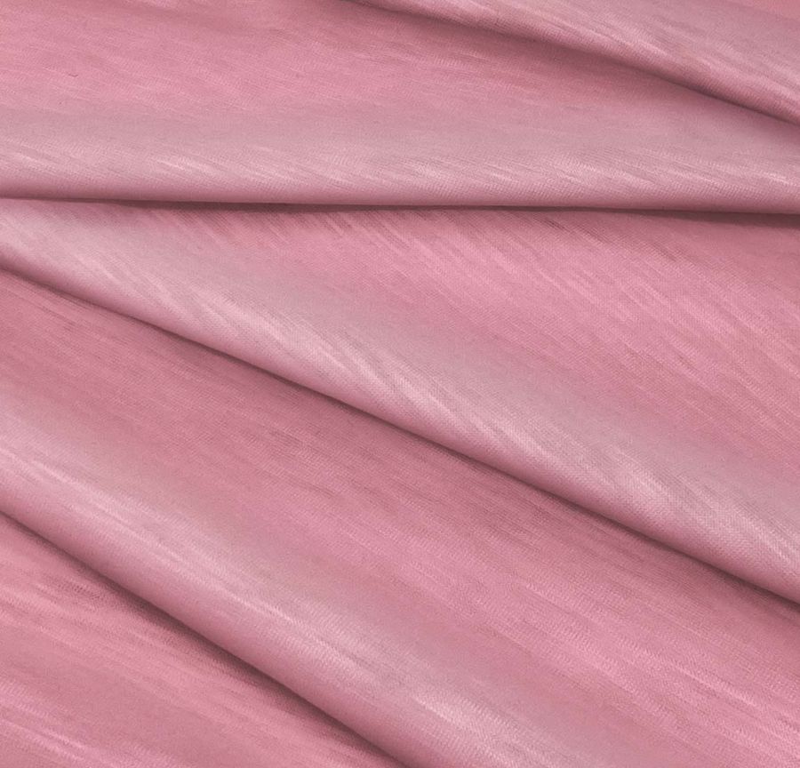 La tela base es el Punto Camiseta Jaspeado - Dubái, una tela de punto de poliéster con un gramaje de 135 gr/m2 y una anchura de 160 cm. El color liso impreso en esta tela es un rosa rosado que se consigue gracias a una combinación de cyan, magenta, yellow y black con un porcentaje de 4, 58, 24 y 0 respectivamente en el modelo de color CMYK. Este color secundario presenta un tono suave y delicado que se asemeja a la flor de la cereza en plena floración. Asocia el rosa rosado con los colores de la gama del beige y los tonos pastel, como el gris claro, el blanco hueso, el verde claro y el azul agua, y combina perfectamente con estampados florales y prendas de diseño romántico.