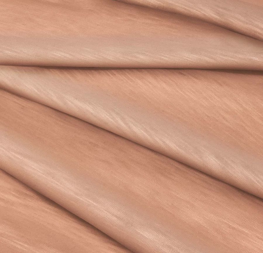 La tela base es la Punto Camiseta Jaspeado - Dubái, que se trata de una tela de punto con una composición del 100% POLIÉSTER y un gramaje de 135 gr/m2. Su ancho es de 160 cm y está impresa en color rosa salmón oscuro, cuyo CMYK es 6 50 51 0. Este color se caracteriza por ser vibrante y cálido, con tonos suaves y elegantes. Combina bien con tonos neutros como el blanco, el gris y el beige, así como con tonos más intensos como el verde botella.