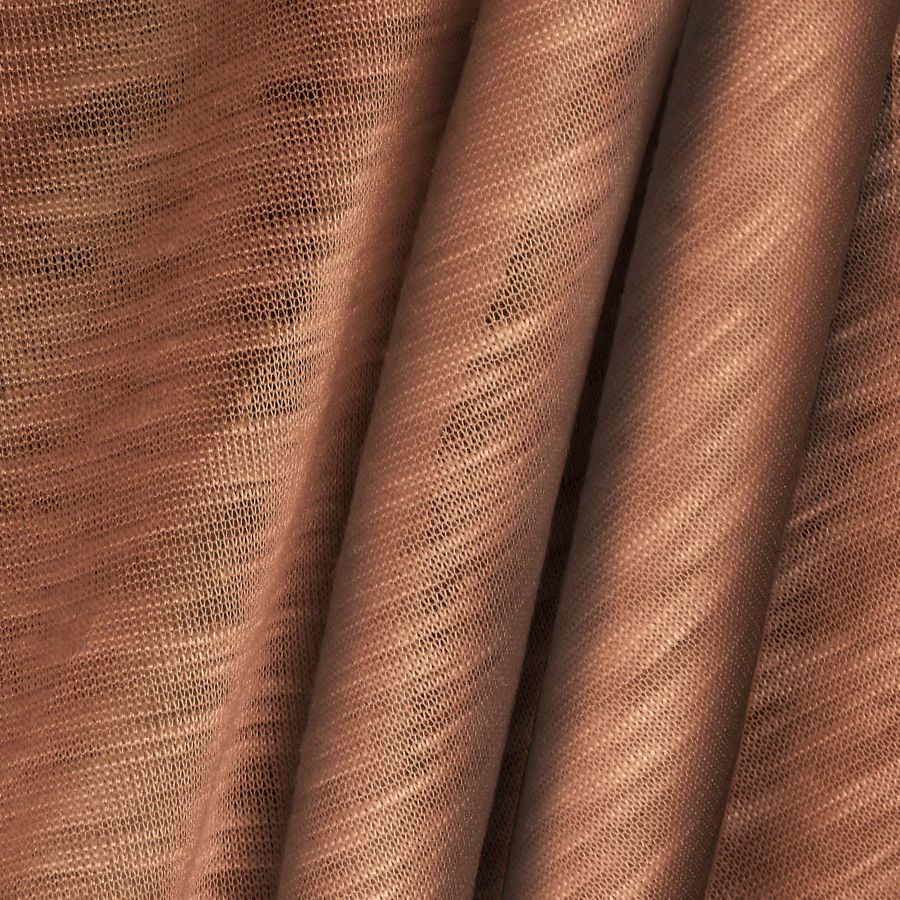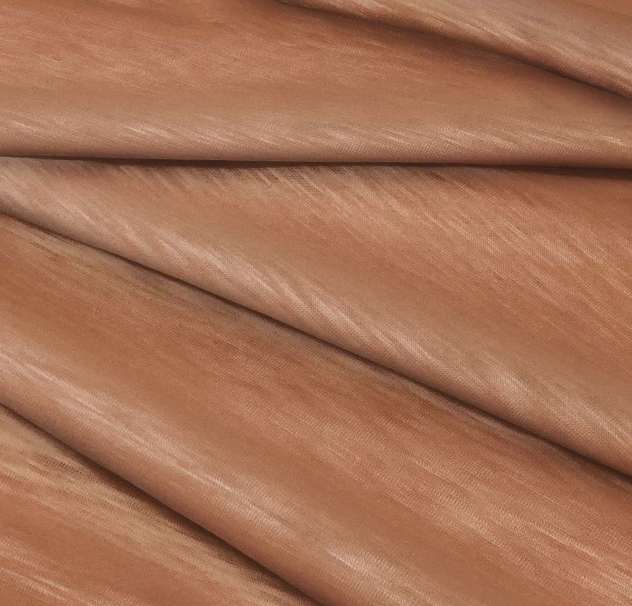 La tela base es la Punto Camiseta Jaspeado - Dubái, una tela de punto 100% POLIÉSTER con un gramaje de 135 gr/m2 y un ancho de 160 cm. El color liso impreso es una combinación de marrón y ámbar, con un CMYK de 27 57 62 20. Este color simboliza la calidez y la estabilidad, y técnica mente se produce utilizando las tintas de Cyan, Magenta, Yellow y Black en proporciones específicas. El color secundario se combina especialmente bien con tonos tierra y marrones más oscuros.