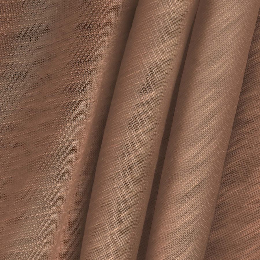 El tejido base es la tela de punto jaspeado Dubái, compuesta por un 100% de poliéster y un gramaje de 135 gr/m2. Su ancho es de 160cm y está indicada para moda, tanto masculina como femenina, en particular para prendas de punto y camisetas. Su color liso impreso es un marrón arenisca que se logra a través de una tecnología de impresión por sublimación de tintas en la cara delantera del tejido.