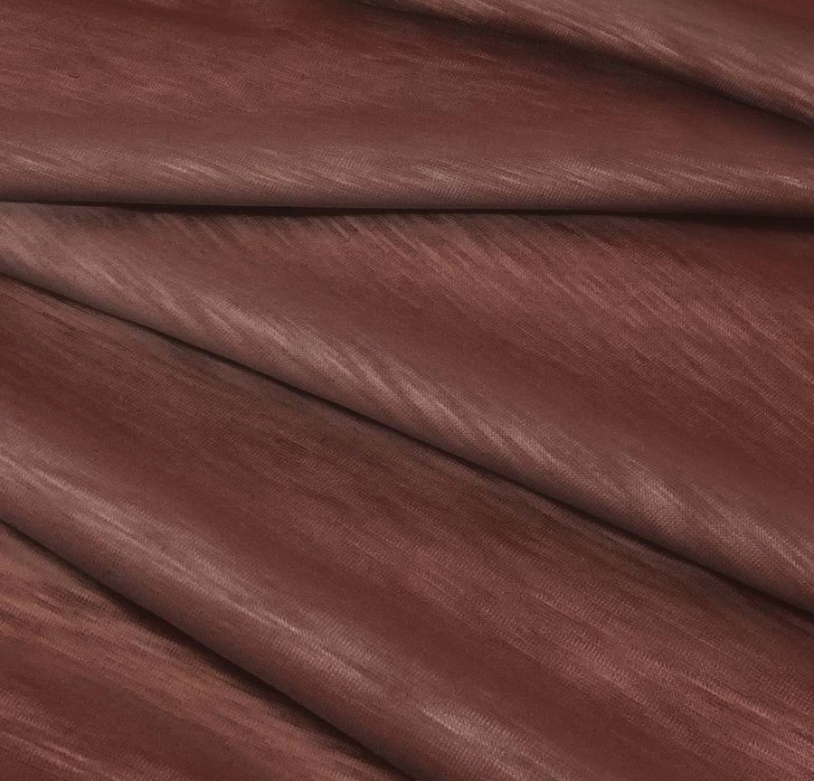 La tela base de este tejido es Punto Camiseta Jaspeado - Dubái, una tela de punto con composición del 100% de poliéster, con un gramaje de 135 gr/m2 y un ancho de 160 cm. El color liso impreso es de color marrón, con un contenido de tinta cian del 39, tinta magenta del 69, tinta amarilla del 61 y tinta negra del 55, representando un CMYK de 39 69 61 55. Este color se asemeja a un cabello castaño, lo cual le da un aspecto cálido y natural. Combina especialmente con tonos crema, beige, marrones claros y tonos tierra.