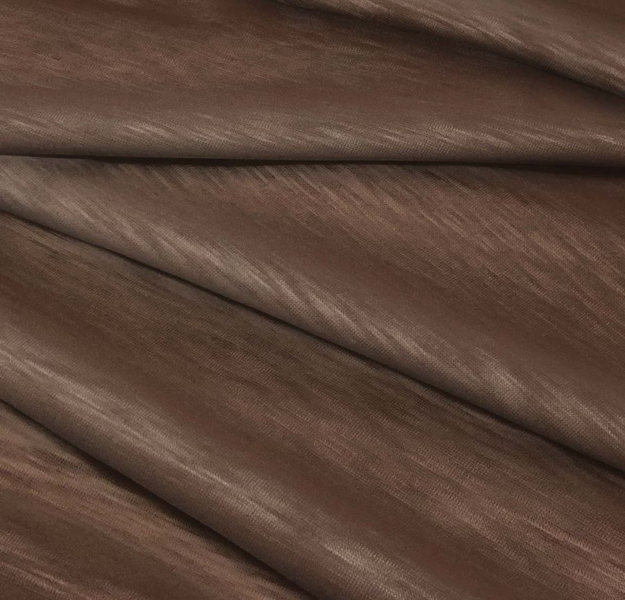 La tela base es Punto Camiseta Jaspeado - Dubái en 100% poliéster, con un gramaje de 135 gr/m2 y un ancho de 160 cm. El color liso impreso es de tonalidades marrón y café, con una combinación de tinta cyan (44), magenta (58), yellow (62) y black (58). El color secundario es de tonalidades cálidas, que recuerdan a la naturaleza y la tierra. Combina bien con tonos neutros como beige y crema, y con tonos más saturados como rojo y naranja. Es un color versátil, cálido y acogedor.
