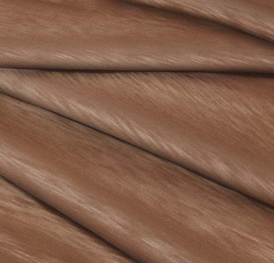 La tela base de este tejido es el Punto Camiseta Jaspeado - Dubái, compuesta por 100% poliéster con un gramaje de 135 gr/m2 y un ancho de 160 cm. El color liso impreso es de un marrón canela, con un CMYK de 35 55 61 39. Este color transmite una sensación de calidez y elegancia, y combina perfectamente con tonos neutros como los grises y los negros, así como con tonos más alegres como los verdes bosque y los techos claros.