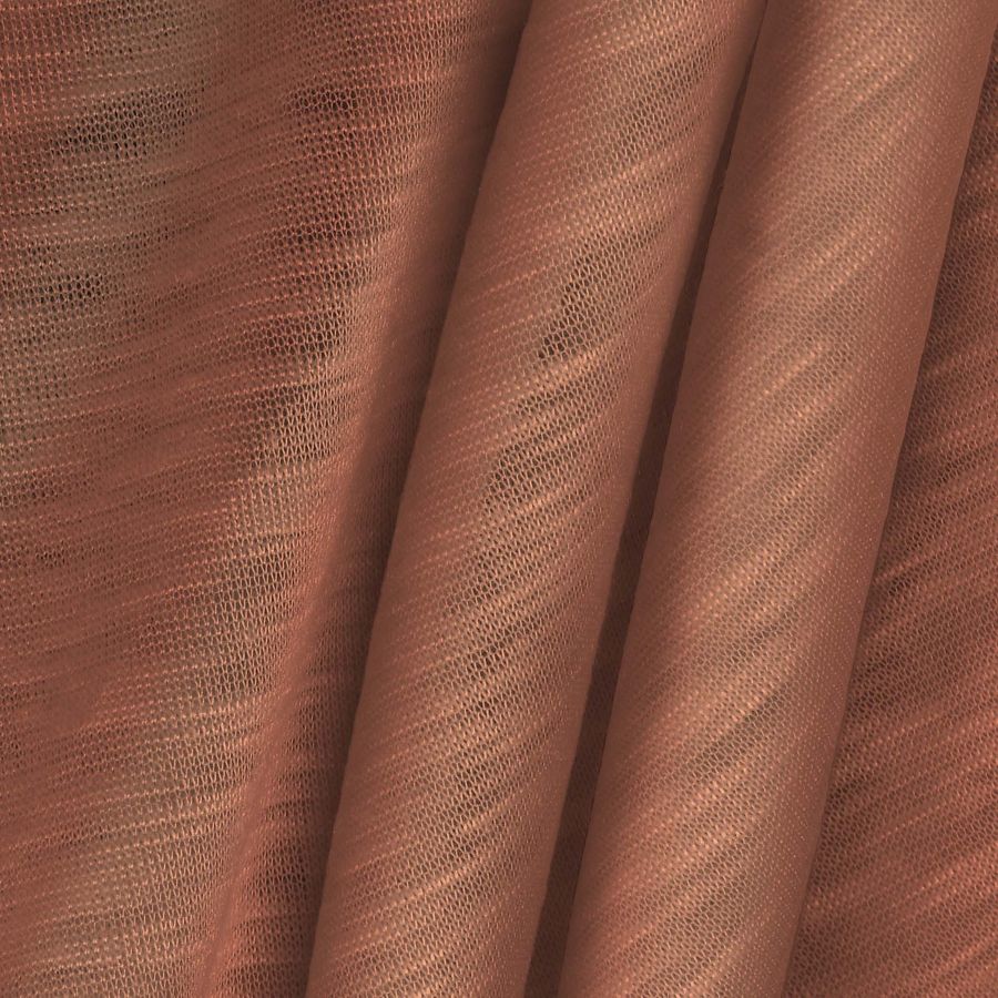 La tela base de esta prenda es la Punto Camiseta Jaspeado - Dubái, con una composición 100% poliéster, un gramaje de 135gr/m2 y un ancho de 160 cm. El color impreso es un Marron Carnelian, que se crea a partir de la combinación de diferentes tintas, tal y como se refleja en su contenido de CMYK: 16 59 60 4. Este color se presenta como una tonalidad tierra, que evoca elementos naturales y cálidos gracias a su tono marrón con matices rojizos. Combina especialmente bien con tonos beige, beige grisáceo y tonos ocres, lo que permite crear looks de aspecto natural y acogedor. Es importante destacar que este tejido está impreso con el color liso a una sola cara por impresión digital textil, no es un tejido tintado sino impreso por una sola cara.