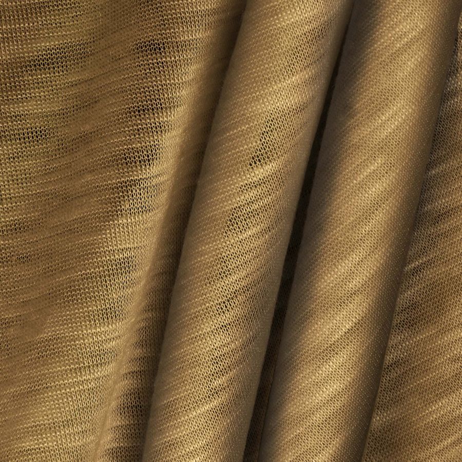 La tela base, Punto Camiseta Jaspeado - Dubái, es una tela de punto compuesta por 100% poliéster con un gramaje de 135 gr/m2 y un ancho de 160 cm. Su color liso impreso es un marrón con tonos de cigarro puro, con un CMYK de 33 46 71 28. Este color secundario es rico en matices y simboliza la elegancia y la sofisticación. Es compatible con colores neutros, como el blanco y el negro, así como con tonos más cálidos y tierra, como el beige y el caqui.