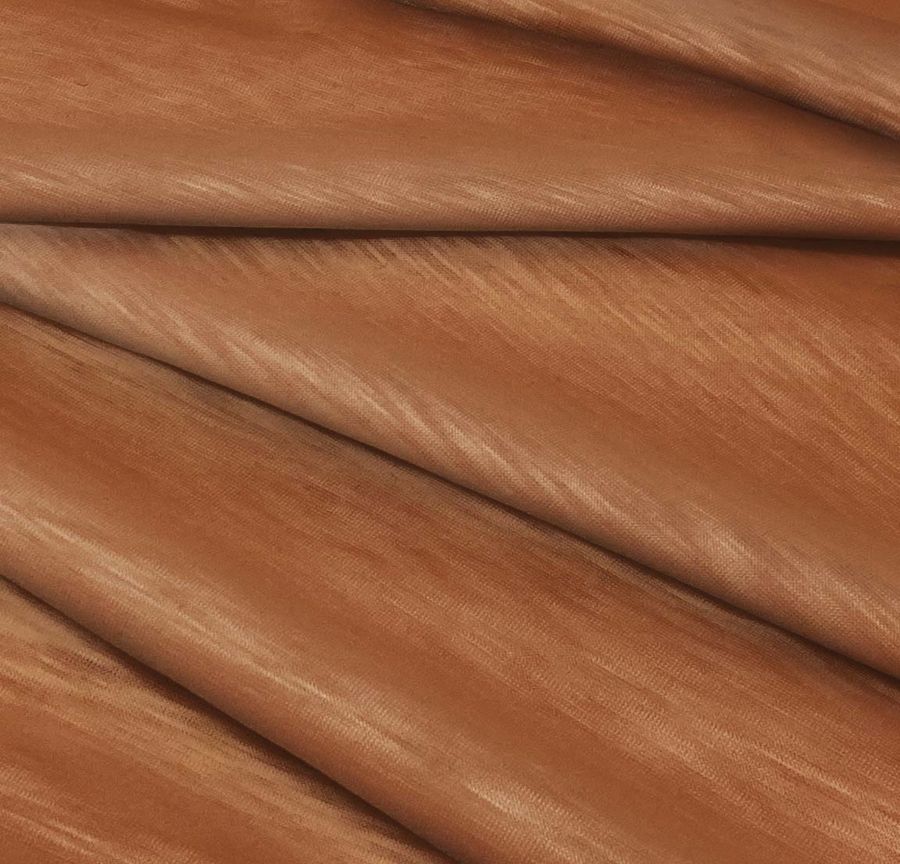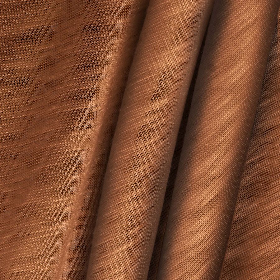 La tela base es la Punto Camiseta Jaspeado - Dubái, una tela de punto compuesta al 100% por poliéster con un gramaje de 135 gr/m2 y 160 cm de ancho. El color liso impreso en esta tela es Marrón Coñac, un tono cálido y elegante que se crea con una combinación de cian, magenta, amarillo y negro (CMYK 29 63 75 28). Este color secundario tiene un matiz marrón rojizo intenso que se asemeja a la savia del árbol, y se combina muy bien con tonos tierra, marfil y azul oscuro en particular.