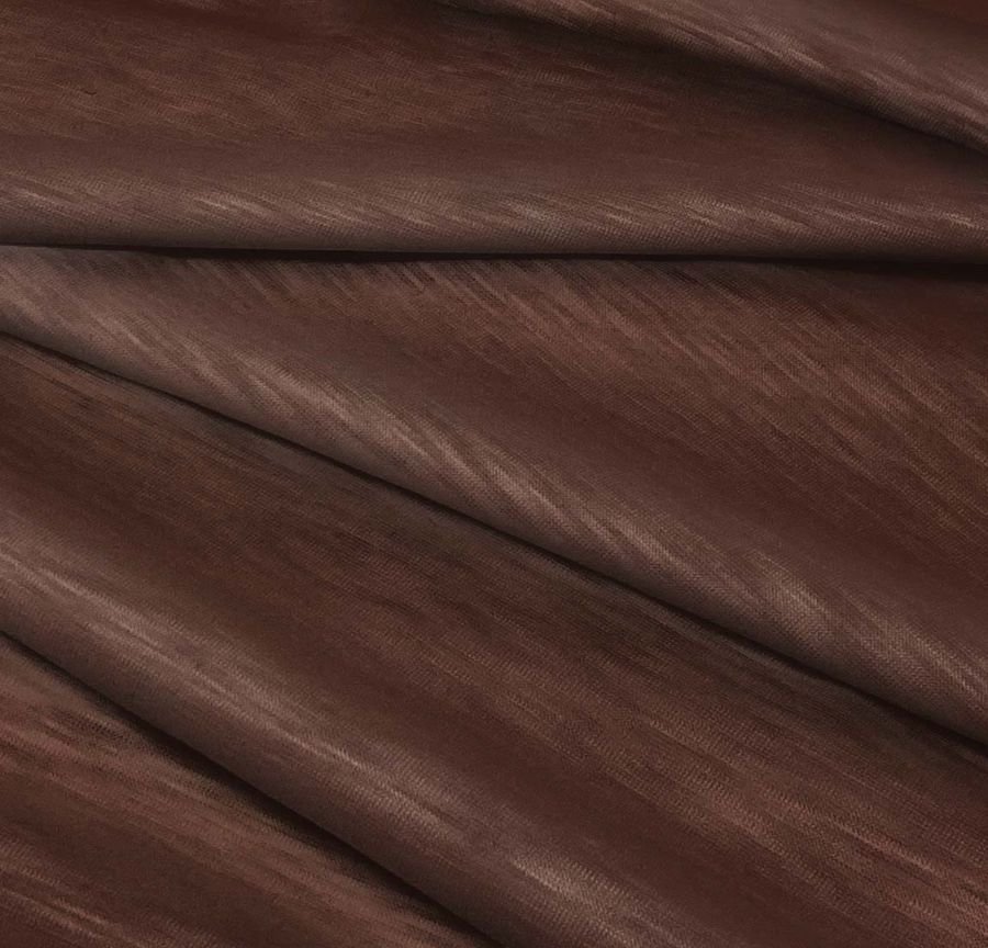 La tela base es el Punto Camiseta Jaspeado - Dubái, una suave y elástica tela de punto compuesta por 100% poliéster, con un gramaje de 135 gr/m2 y un ancho de 160 cm. Este tejido, de temporada atemporal, es ideal para prendas de punto y camisetas de moda tanto para mujeres como hombres. El color liso impreso en este tejido es un marrón inspirado en la madera caoba, utilizando tintas cian, magenta, amarillo y negro con un CMYK de 44 68 65 67. Este color proporciona una sensación cálida y natural, lo que lo hace ideal para la creación de prendas de moda con un toque ecológico y natural.