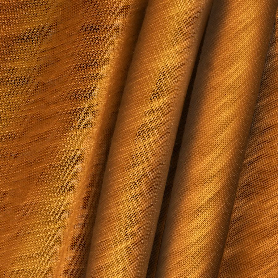 La tela base de este material es el Punto Camiseta Jaspeado - Dubái, una tela de punto compuesta en un 100% de poliéster con un gramaje de 135 gr/m2 y un ancho de 160 cm. En cuanto a su color liso impreso, se trata de un marrón brillante con un CMYK de 23 63 97 13, tras la impresión digital textil a una sola cara. Una particularidad de este color es que combina perfectamente con tonos cálidos como el naranja, verde o amarillo, creando una armonía en la paleta de colores.