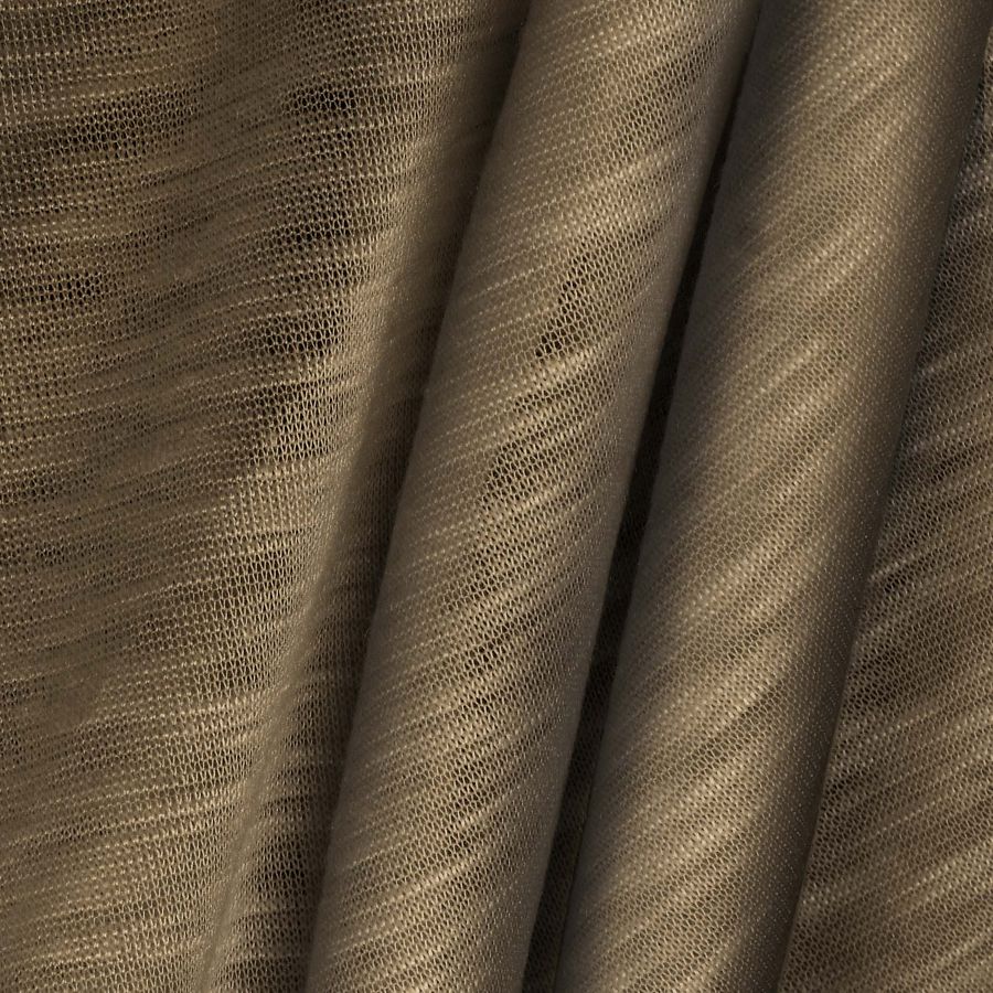 La tela base es Punto Camiseta Jaspeado - Dubái, una tela de punto de 100% poliéster con un gramaje de 135 gr/m2 y ancho de 160 cm. El color liso impreso en esta tela es Marron Olivo (CMYK: 46 48 64 42), que posee una tonalidad cálida y natural. Este color secundario se caracteriza por su capacidad para aportar una sensación de confort y tranquilidad, lo que lo hace idóneo para su uso en prendas de moda casual y deportiva. Combina especialmente bien con colores neutros como el beige, el blanco y el gris.
