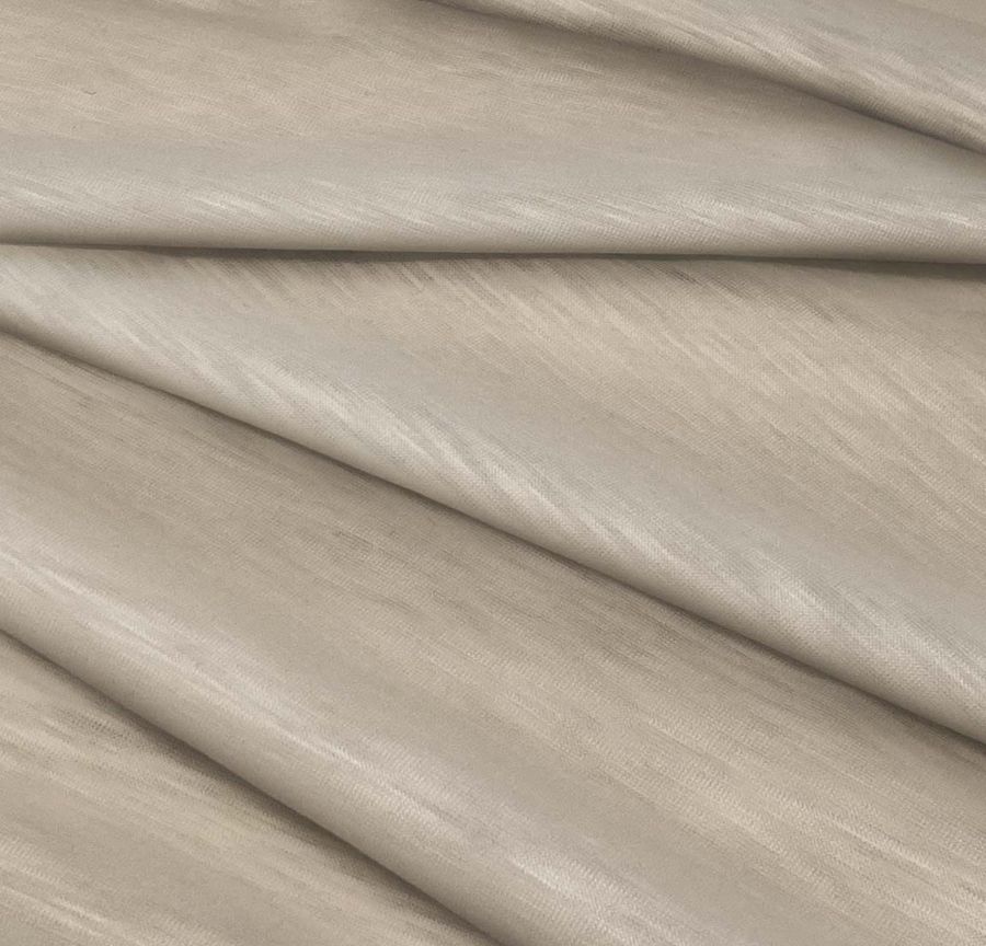 La tela base, Punto Camiseta Jaspeado - Dubái, es una tela de punto de 100% poliéster con un gramaje de 135 gr/m2 y un ancho de 160 cm. Su color liso impreso es marrón pálido con un CMYK de 25 29 38 8. Este color transmite una sensación de calidez y naturalidad, transmitiendo una imagen de tranquilidad y elegancia. El color predominante es el marrón y contiene tonos ocres y un amarillo pálido que armonizan perfectamente, lo que lo convierte en un color muy versátil para combinar con otros colores.