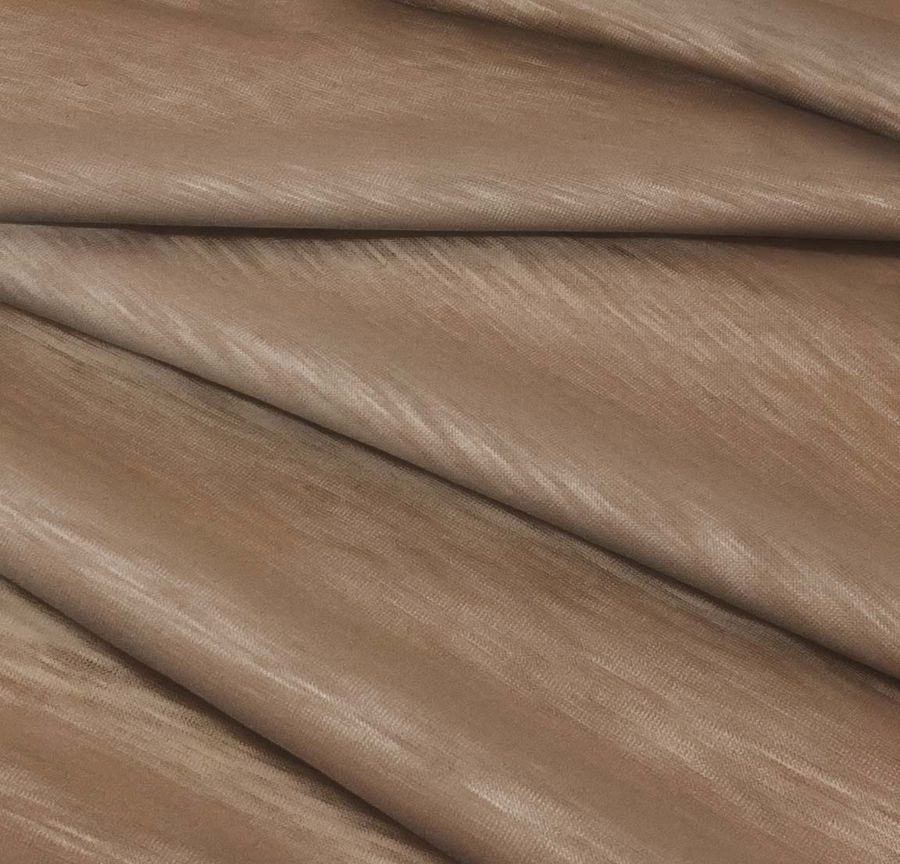 La tela base de este producto es el Punto Camiseta Jaspeado-Dubái, compuesta por 100% poliéster, con un gramaje de 135 gr/m² y un ancho de 160 cm. El color liso impreso es Marrón-Roble, cuyo CMYK es 36 47 54 32. El color Marrón-Roble se caracteriza por ser un tono cálido, versátil y elegante, que evoca la naturaleza y la madera. Este color se combina de forma armoniosa con otros tonos cálidos como el beige, el naranja y el crema. La tela está impresa con el color liso a una sola cara por impresión digital textil.