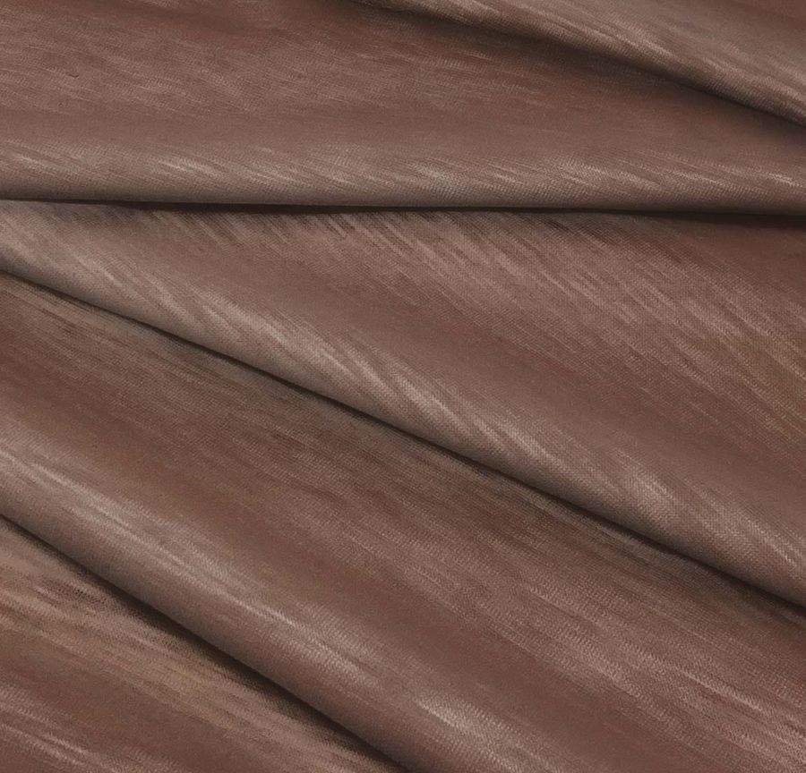 El tejido está impreso con el color liso a una sola cara mediante impresión digital textil, lo que significa que el color se aplicó solo en una superficie del tejido. La textura de la tela es lisa y elástica, lo que brinda comodidad y flexibilidad a la prenda. Además, esta tela presenta una textura visual translúcida y jaspeada, lo que le otorga cierta profundidad y contraste a la apariencia final de la prenda.