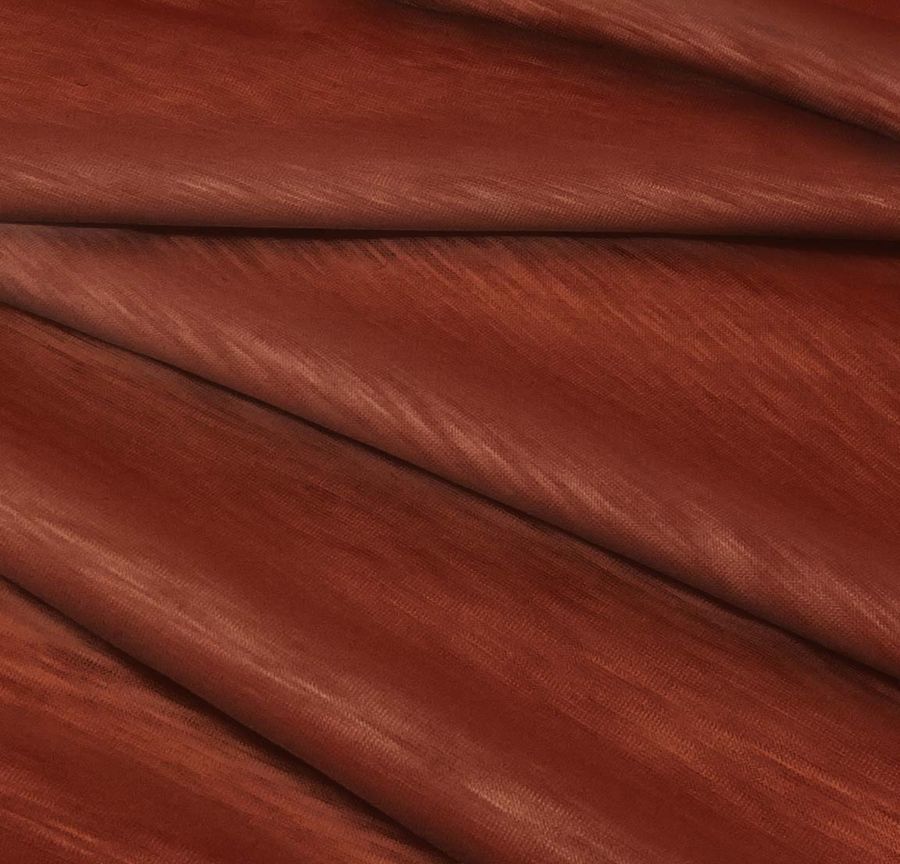 La tela base utilizada para este tejido es Punto Camiseta Jaspeado - Dubái de 100% poliéster con un gramaje de 135 gr/m2 y un ancho de 160 cm. El color liso impreso es un Marrón Noche de Sangre con una tinta Cyan de 34, tinta Magenta de 87, tinta Yellow de 90 y tinta Black de 50, obteniendo un CMYK de 34 87 90 50. Este color simboliza la fuerza y la pasión, y técnicamente es un tono cálido con un matiz rojizo oscuro. Este color combina especialmente bien con tonos grises, cremas y tonos arena. Cabe destacar que el tejido está impreso a una sola cara por impresión digital textil.