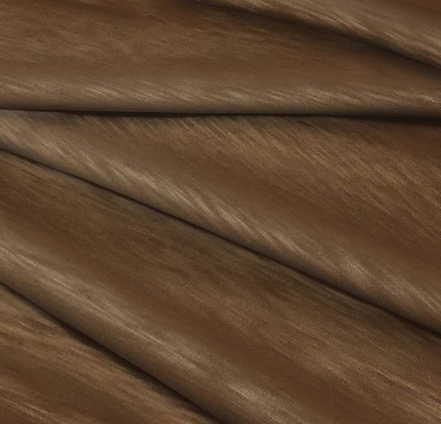 La tela base se trata de la Punto Camiseta Jaspeado - Dubái, una tela de punto compuesta por 100% poliéster y con un gramaje de 135 gr/m2. Su ancho es de 160 cm y su color liso impreso es de Marrón Nogal, con un CMYK de 43 58 73 56. Este color presenta un matiz que oscila entre un marrón oscuro y un café intenso, reflejando tonos cálidos y acogedores. Es un color fácil de combinar con otros tonos tierra, como el beige, dorado o naranja.
