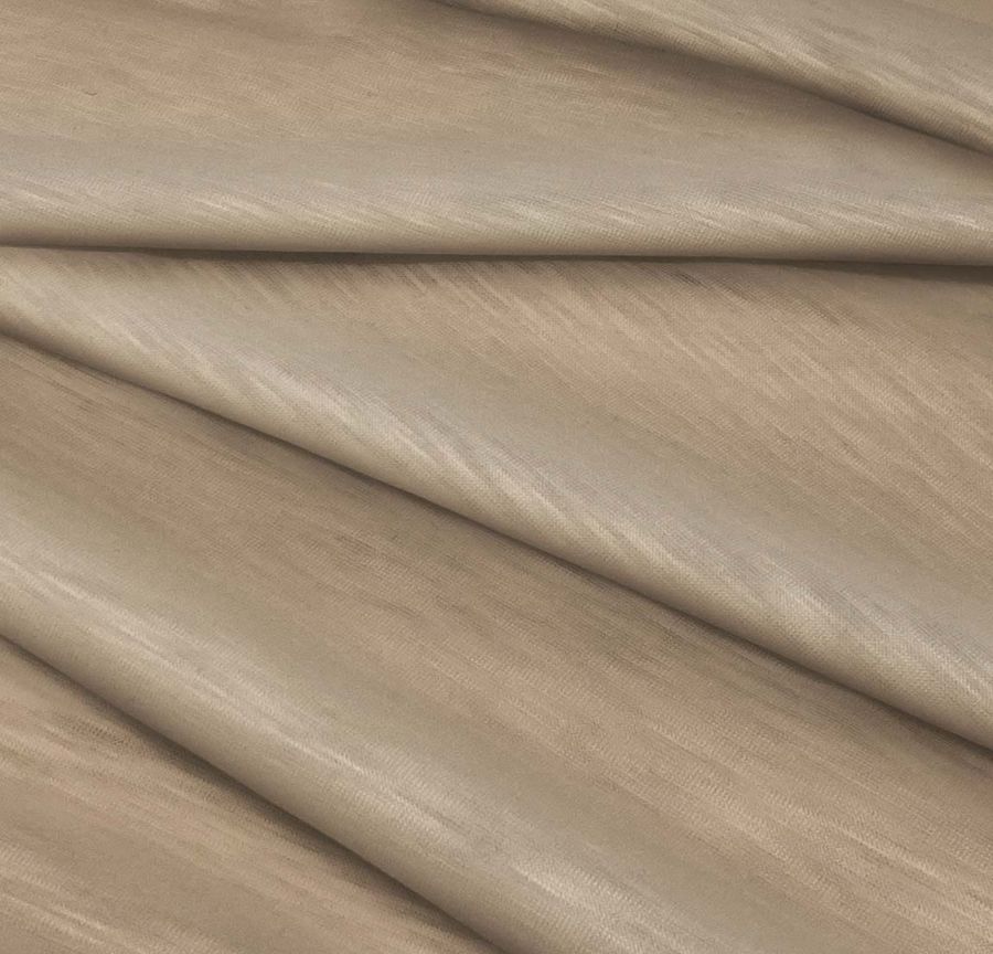 La tela base es suave al tacto y elástica, lo que la hace especialmente adecuada para la confección de prendas de punto. Tiene una textura lisa, visual translúcida y visual jaspeada. El color impreso resalta sobre la superficie de la tela, gracias a la tecnología de impresión digital textil utilizada.