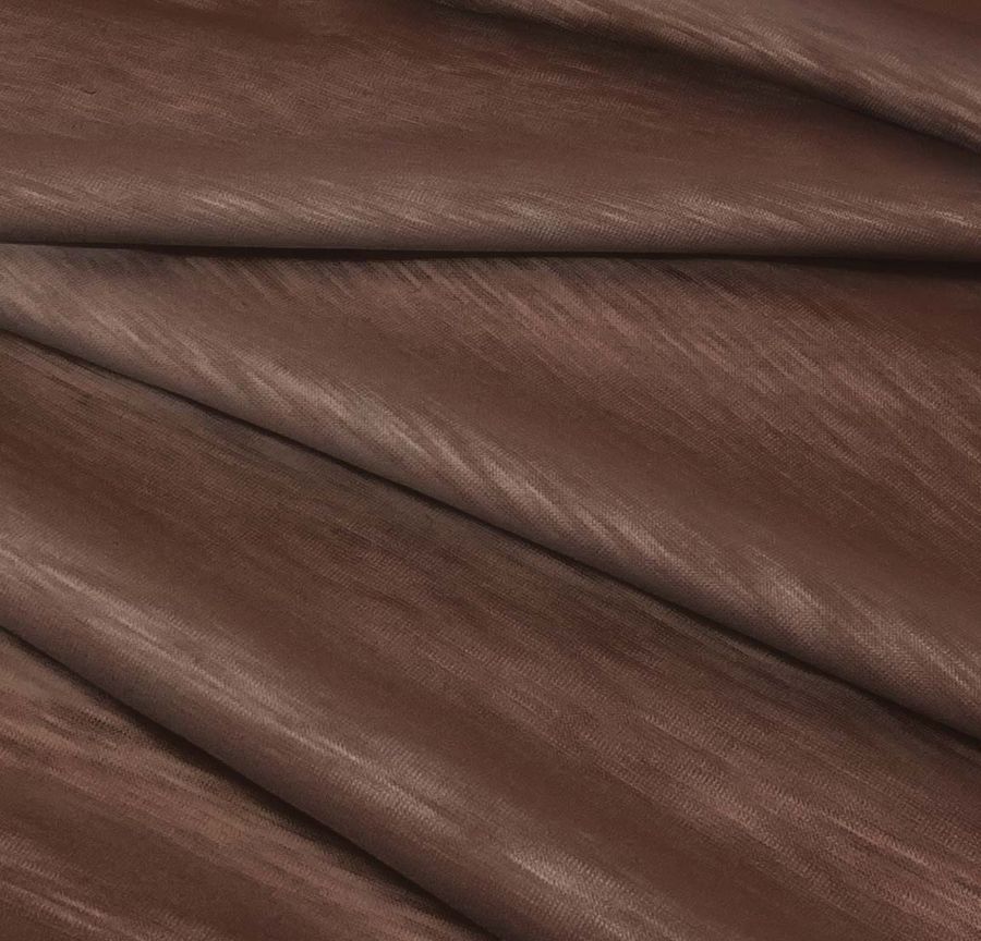 La tela base Punto Camiseta Jaspeado - Dubái es una Tela de Punto compuesta por 100% POLIÉSTER con un gramaje de 135 gr/m2 y un ancho de 160 cm. El color liso impreso es Marrón-Pardo, cuyo CMYK es 42 61 60 59, combinando tonos tierra y marrones claros. El tejido está impreso con el color liso a una sola cara por impresión digital textil, lo que significa que no es un tejido tintado sino impreso por una sola cara.