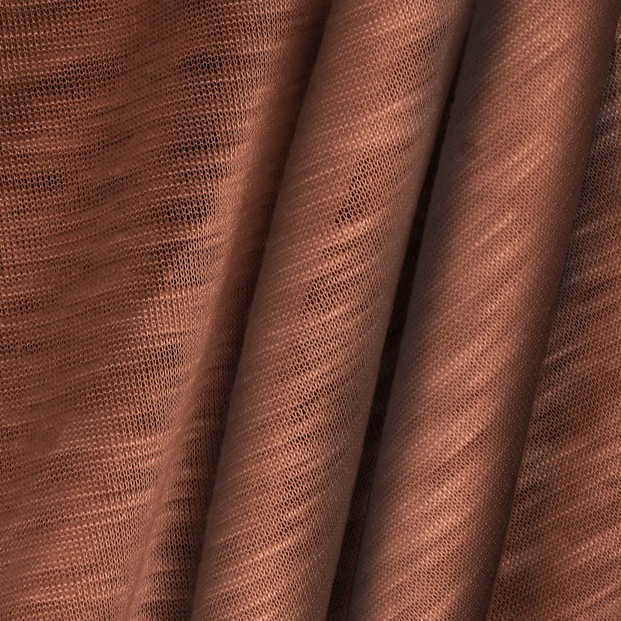 La tela base de esta prenda es una Punto Camiseta Jaspeado - Dubái, compuesta en su totalidad por poliéster. El color liso impreso es un tono marrón con pátina, cuyo CMYK es 33 65 67 38. Este color se caracteriza por ser oscuro y tener un aspecto "viejo", aportando profundidad a la prenda. Su tonalidad permite combinarlo con otros colores marrones o beige para una apariencia más cálida y natural.