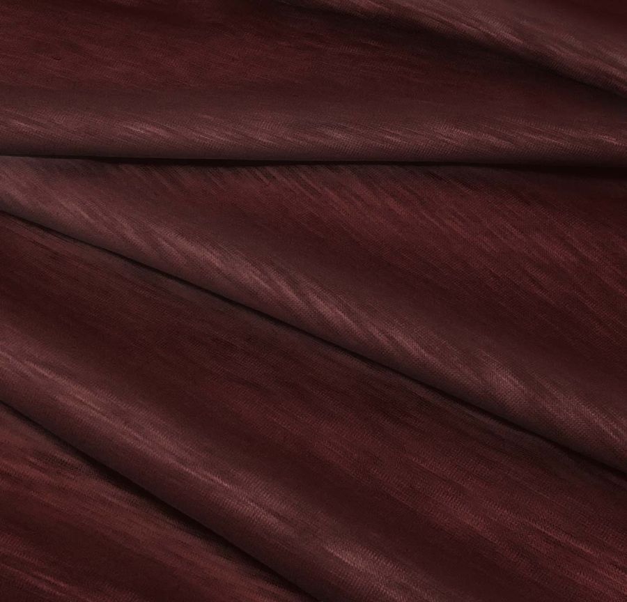 La tela base presenta una textura realista y agradable al tacto, suave y elástica. Es visualmente translúcida y jaspeada, lo que le da un aspecto llamativo. Por su parte, el color liso impreso agrega un elemento de elegancia sin sacrificar la comodidad. Cabe destacar que esta tela se imprime a una sola cara por impresión digital textil, lo que significa que el color liso está presente solo en una de las caras del tejido y no ha sido teñido.