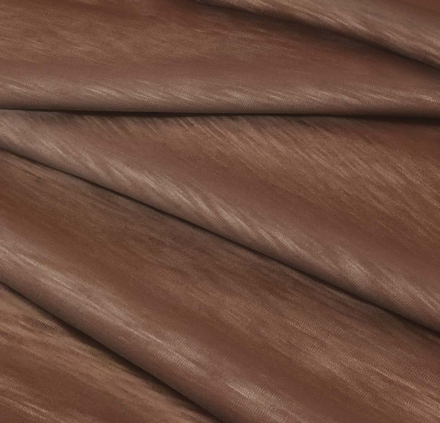 La tela base es el Punto Camiseta Jaspeado - Dubái, compuesta al 100% por poliéster con un gramaje de 135 gr/m2 y un ancho de 160 cm. Su color liso impreso es Marrón Tostado, con un CMYK de 39 59 62 50. Este color es simbólicamente cálido y acogedor, inspira la naturaleza y combina especialmente bien con tonos naranjas y dorados. La tela base es suave al tacto, elástica y tiene una textura visual translúcida y jaspeada. La impresión digital textil se ha aplicado a una sola cara, no se trata de un tejido tintado sino impreso. Esta tela es ideal para prendas de moda tanto para mujer como para hombre, especialmente para confeccionar camisetas. Además, por su composición en poliéster, es una tela altamente resistente al desgaste y duradera en el tiempo.
