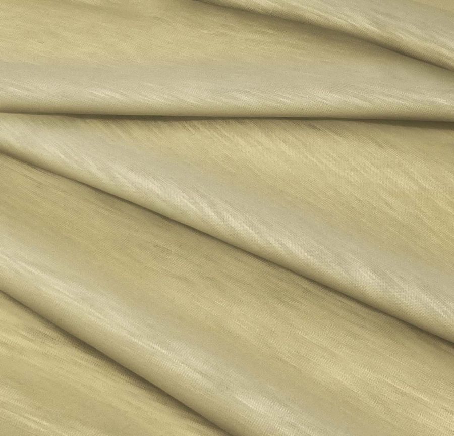 La tela base es lisa al tacto y visualmente presenta una textura translúcida y jaspeada. Además, es elástica y se ajusta a la figura del usuario. Por su composición y características, es excelente para la manufactura de prendas de moda masculinas y femeninas, como camisetas, tops y vestidos de punto, debido a que permite una gran movilidad y comodidad.