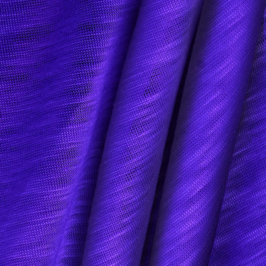 La tela base es la Punto Camiseta Jaspeado - Dubái, de 100% poliéster con un gramaje de 135 gr/m2 y un ancho de tela de 160 cm. El color de la tela base es liso impreso en un tono morado-azul violáceo con un CMYK de 87 83 0 0. Este color secundario cuenta con una presencia elegante y sofisticada que sugiere tranquilidad y calma. Es un color que simboliza la sabiduría, la justicia y la creatividad, y que se combina perfectamente con tonos neutros como el blanco y el gris, así como con colores más intensos como el rosa o el verde.