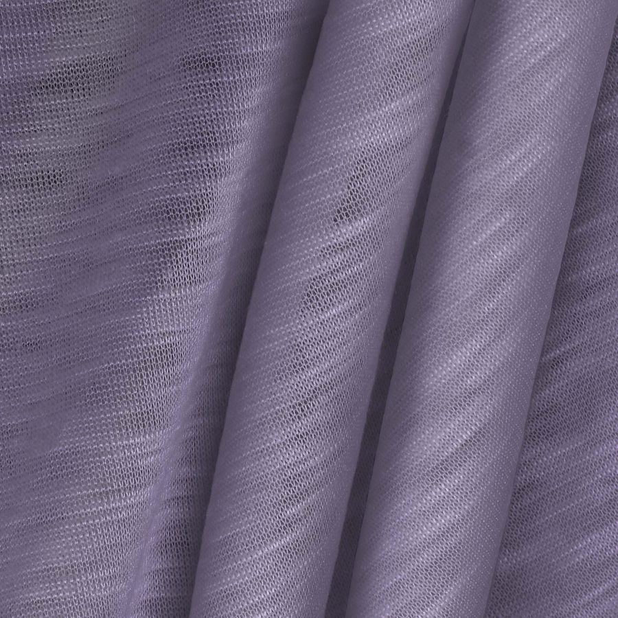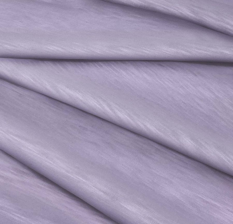 La tela base de esta referencia es el Punto Camiseta Jaspeado - Dubái, una tela de punto compuesta por 100% poliéster con un gramaje de 135 g/m2 y un ancho de 160 cm. La tela presenta una textura jaspeada visual y táctil, lisa al tacto y translúcida al ser expuesta a la luz. El color liso impreso en este tejido es un morado intenso con matices de campánula violeta, cuyo CMYK es 40 43 8 0. Este color combina especialmente bien con otros tonos fríos.