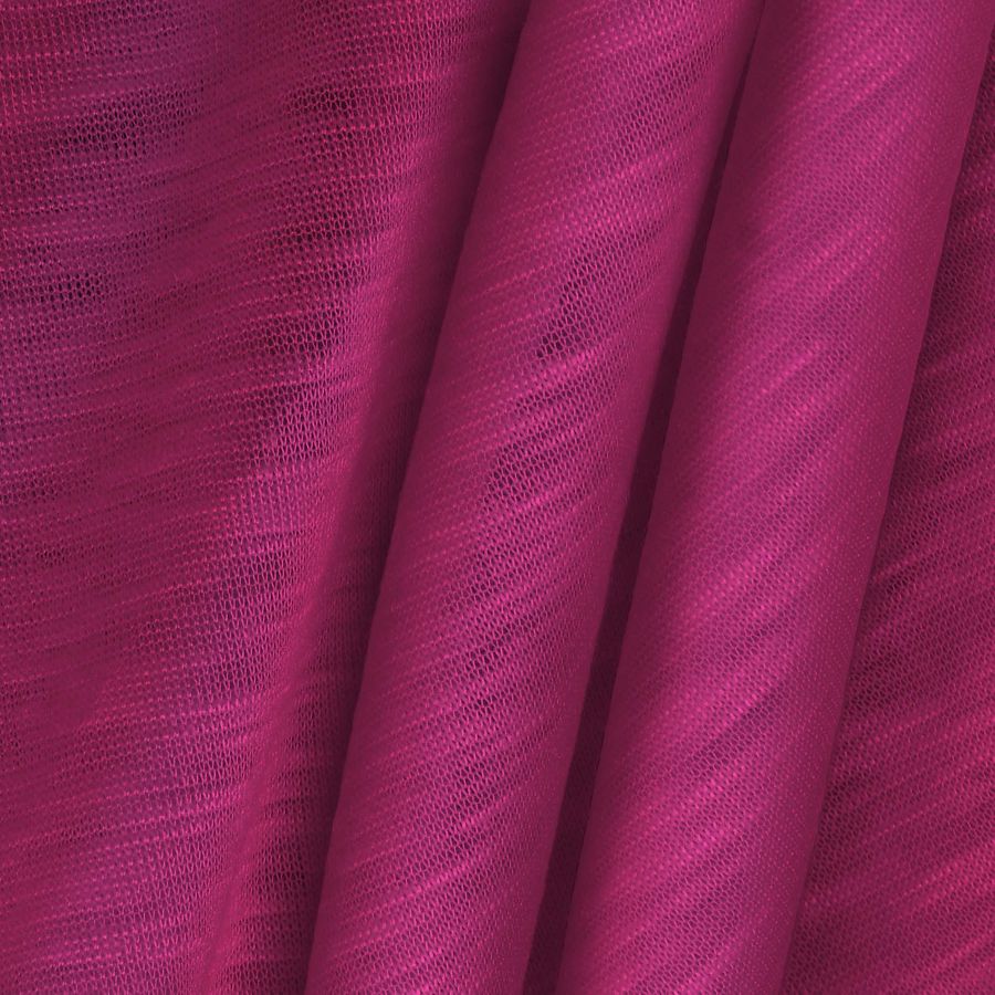Este tejido ha sido impreso con el color liso a una sola cara mediante impresión digital textil. La tela base es elástica y tiene una textura jaspeada que la hace visualmente interesante. Además, es de un tacto suave y translúcido. El color liso es intenso y resistente a la decoloración.