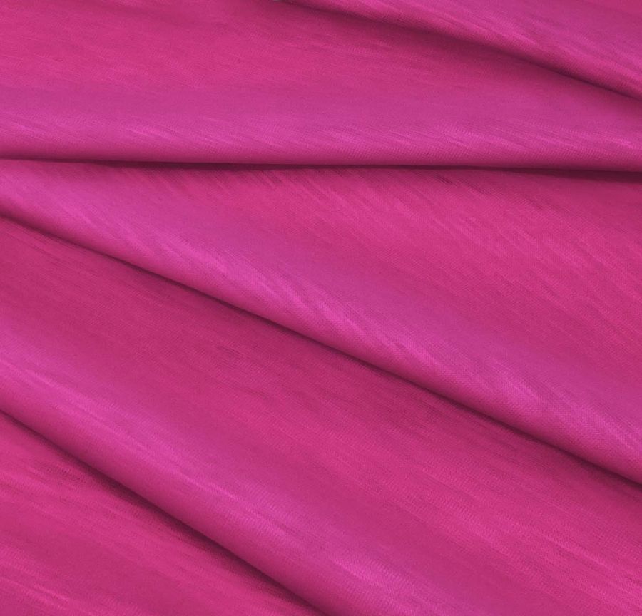 La tela base de esta descripción es el Punto Camiseta Jaspeado - Dubái, con una composición de 100% poliéster, un gramaje de 135 gr/m2 y un ancho de 160 cm. El color liso impreso es Morado-Magenta, con un CMYK de 15 90 21 2. Este color es un fusión de tonos rojos y azules, lo que crea un color intenso y vibrante. El morado es un color asociado a la espiritualidad, la imaginación y la creatividad, mientras que el magenta es un color asociado al amor, la pasión y la alegría. Combina bien con tonos rosa, naranja y verde.