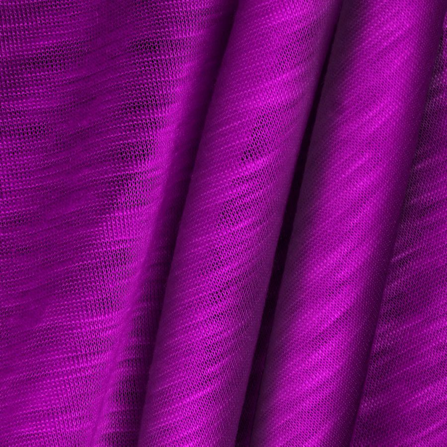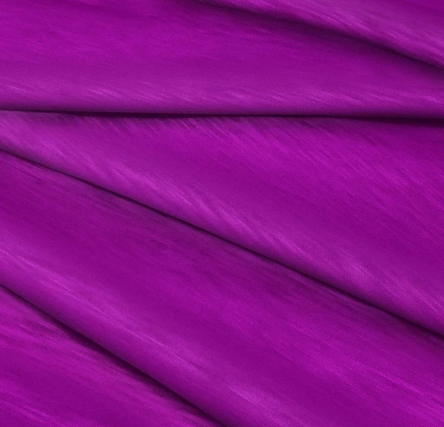 La tela base de este tejido es Punto Camiseta Jaspeado - Dubái, una tela de punto compuesta 100% de poliéster con un gramaje de 135 gr/m2 y un ancho de 160 cm. El color liso impreso que se encuentra sobre esta tela base es Morado Mardi Gras, con una combinación de tintas Cyan 60, Magenta 100, Yellow 0 y Black 0, lo que resulta en un CMYK de 60 100 0 0. Este color se presenta vibrante y lleno de vida, con un toque de energía que lo hace ideal para prendas de moda tanto para hombres como para mujeres.