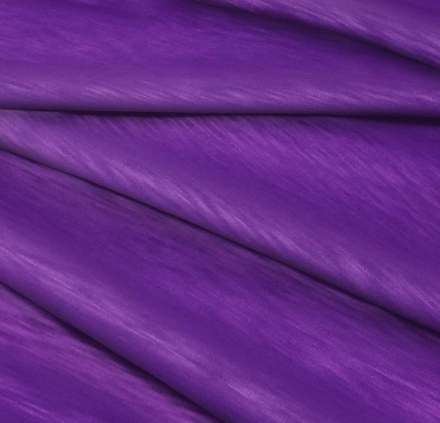 La tela base, Punto Camiseta Jaspeado - Dubái, es una tela de punto de poliéster con un gramaje de 135 gr/m2 y un ancho de 160 cm. En cuanto al color liso impreso, destacan un morado y azul purpureo, que se corresponden con las tintas Cyan: 78, Magenta: 99, Yellow: 3 y Black: 0, es decir, un CMYK de 78 99 3 0. Este color secundario presenta un tono vibrante y energético, que recuerda a la profundidad del océano, pero con un toque de elegancia y sofisticación gracias al matiz violeta. A nivel técnico, se trata de un color con una buena intensidad en todas las áreas del espectro, algo que lo hace muy versátil y fácil de combinar, especialmente con tonos neutros como el blanco, el gris o el negro. Además, se puede integrar en una amplia variedad de diseños, desde los más abstractos y modernos hasta los más clásicos y convencionales. Es importante destacar que este tejido se imprime a una sola cara por impresión digital textil, lo que significa que no es un tejido tintado sino impreso.