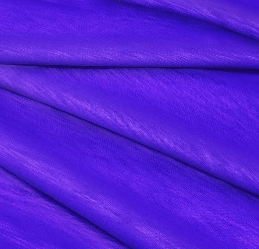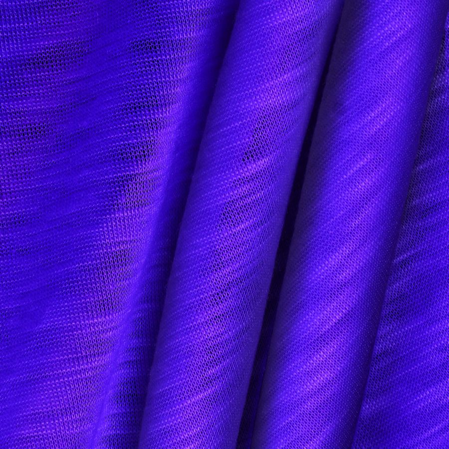 La tela base es la Punto Camiseta Jaspeado - Dubái, una tela de punto hecha de 100% poliéster con un gramaje de 135 gr/m2 y un ancho de 160 cm. El color liso impreso en esta tela es un tono morado-púrpura con un CMYK de 86 77 0 0. El color secundario que nos han proporcionado es un tono oscuro y profundo que refleja un sentido de misterio y elegancia. Este tono combina bien con tonos claros como beige y amarillo, y tonos oscuros como negro y gris.