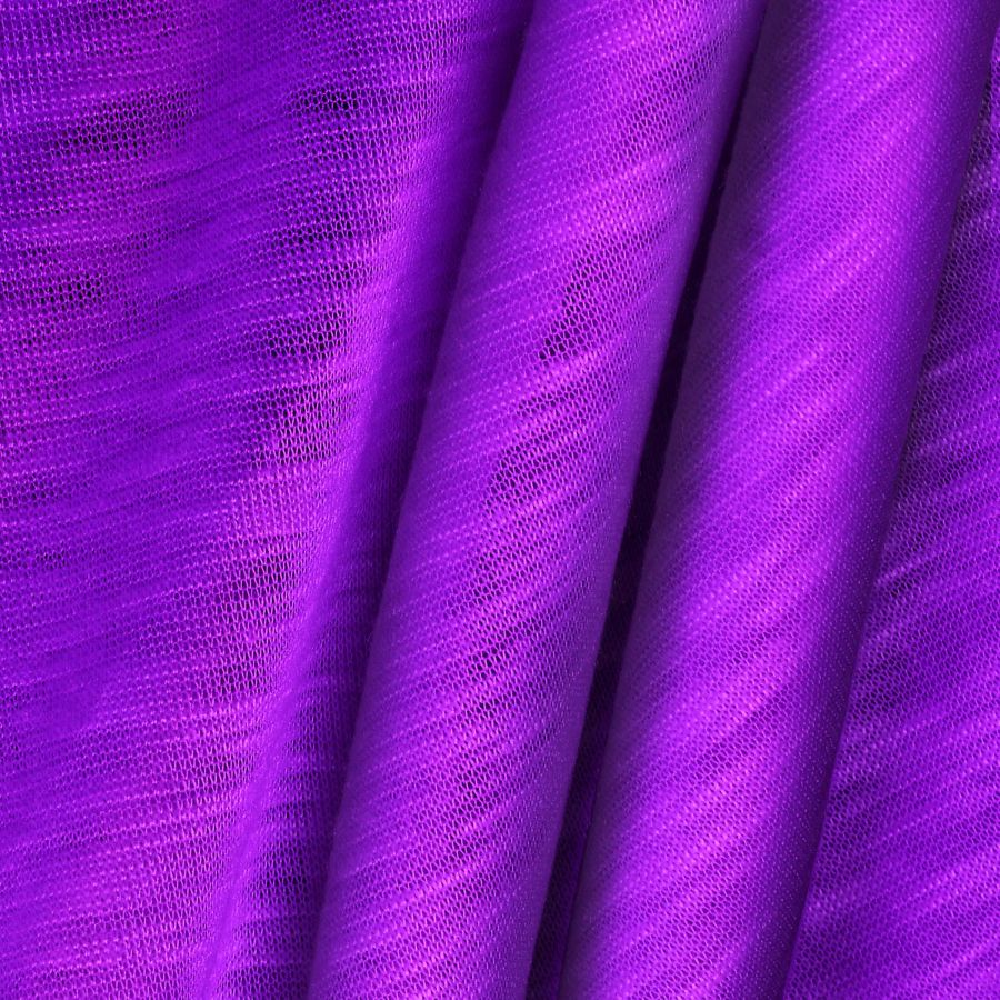 La tela base es la Punto Camiseta Jaspeado-Dubái, una tela de punto 100% poliéster con un gramaje de 135 gr/m2 y un ancho de 160 cm. Su color liso es Morado/Purpura X11, impreso con una tecnología de sublimación utilizando tintas en CMYK 70-81-0-0. Este color secundario ofrece un tono equilibrado y vibrante, con una mezcla de azul y rojo que crea un efecto visual atractivo y elegante. El color morado o púrpura combina particularmente bien con colores como el verde, el rosa y el beige.
