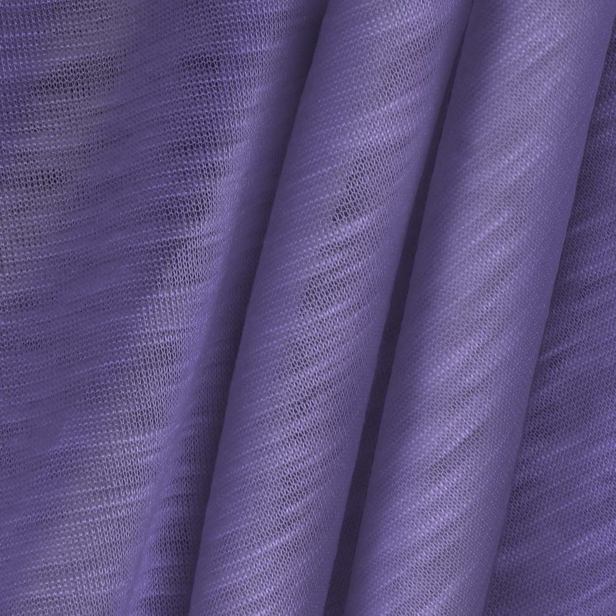 La tela base de la Punto Camiseta Jaspeado - Dubái es de tipo punto y está compuesta 100% de poliéster. Tiene un gramaje de 135 gr/m2 y un ancho de 160 cm. El color liso impreso en esta tela es de tonalidad morado-ube con un CMYK de 56 56 0 0. Este color secundario se caracteriza por ser fuerte, vibrante y enérgico, transmitiendo un mensaje de creatividad y originalidad. Combina perfectamente con colores azules, verdes, rosas y grises.