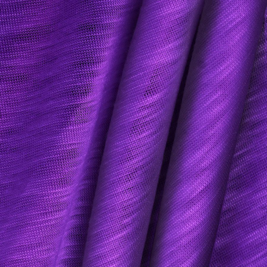 La tela base de esta descripción es el Punto Camiseta Jaspeado - Dubái, un tipo de tela de punto compuesta por 100% de poliéster con un gramaje de 135 gr/m2 y un ancho de 160 cm. Su color liso impreso es de un tono morado uva, con un contenido de tinta cyan del 75, tinta magenta del 87, tinta yellow del 0 y tinta black del 0, representado en el CMYK como 75 87 0 0. Este color ofrece una sensación de misterio, elegancia y creatividad.