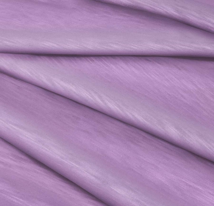La tela base, Punto Camiseta Jaspeado - Dubái, es una tela de punto compuesta por un 100% de poliéster y con un gramaje de 135 gr/m2. Esta tela cuenta con un ancho de 160 cm y es de color liso impreso en tonalidades de Morado y Violeta Africana, según el CMYK de 35 55 0 0, que le aportan una apariencia vibrante y elegante. El color secundario de este tejido es el violeta africano, el cual se considera un color cálido y dinámico, asociado a la creatividad y la originalidad. Este color combina en particular con los tonos grises, blancos, negros y plateados, creando una paleta armoniosa y contemporánea apta para prendas de moda tanto de hombre como de mujer.