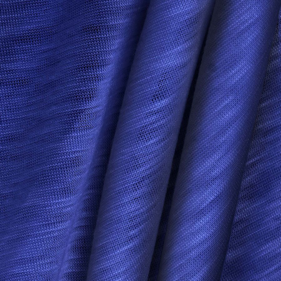 El Punto Camiseta Jaspeado - Dubái es un tipo de tela de punto compuesta al 100% por poliéster, con un gramaje de 135 gr/m2 y un ancho de 160 cm. El color liso impreso en este tejido es un Morado-Violeta de Cobalto, que se puede describir simbólicamente como un color que evoca el misterio y la intensidad, capaz de transmitir una sensación de fuerza y elegancia. Técnicamente, el color secundario de este tejido se compone de una tinta Cyan al 95%, Magenta al 84%, Yellow al 9% y Black al 1% en un perfil de color CMYK 95 84 9 1. El color violeta de cobalto combina muy bien con tonos pasteles como el rosa, el naranja y el amarillo claro, así como con colores fuertes como el verde esmeralda y el azul oscuro.