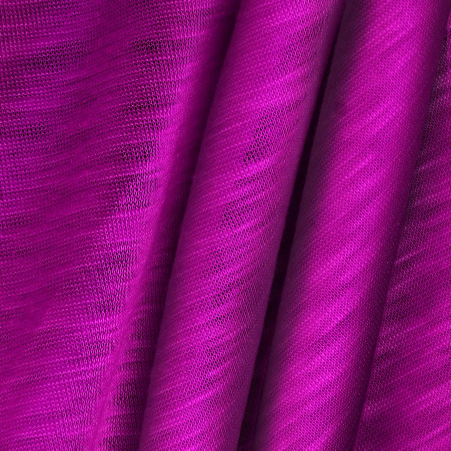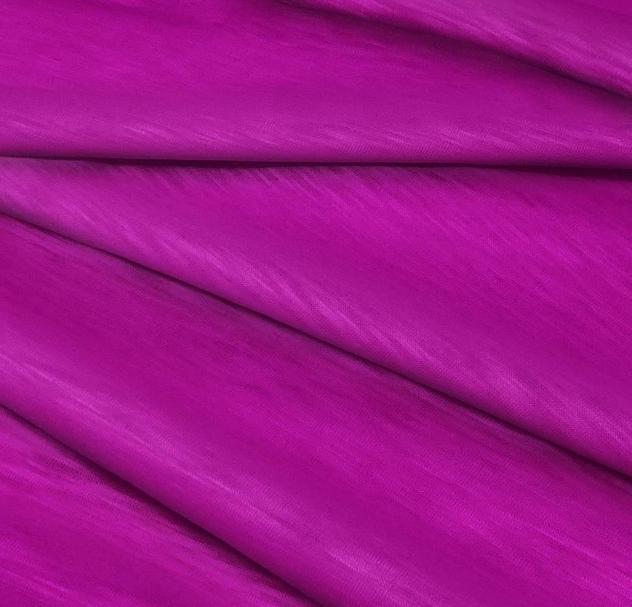 La tela base es el Punto Camiseta Jaspeado - Dubái, compuesta por 100% poliéster, con un gramaje de 135 gr/m2 y un ancho de 160 cm. El color liso impreso es Morado Violeta Violín con un CMYK de 45 100 0 0. Este color transmite elegancia, misterio y sofisticación gracias a sus tonalidades oscuras. Combina muy bien con tonos plateados y dorados, lo que le da una apariencia más glamurosa.