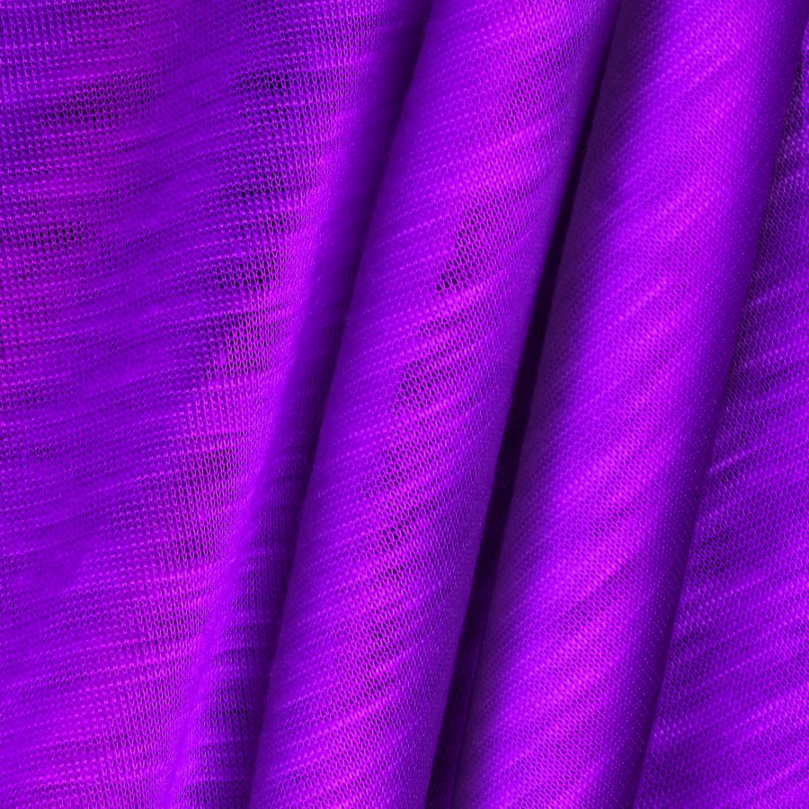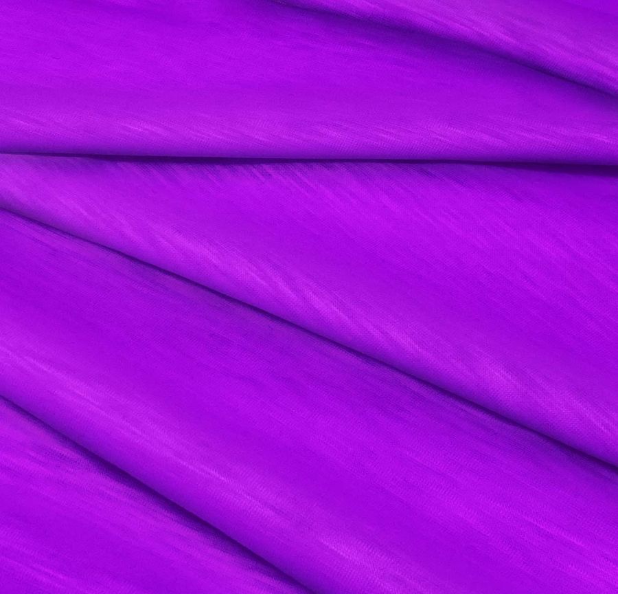 La tela base de esta prenda es el Punto Camiseta Jaspeado - Dubái, una tela de punto compuesta por un 100% de poliéster, con un gramaje de 135 gr/m2 y un ancho de 160cm. Su color liso impreso es morado/vivid violeta, con una tinta Cyan de 72, una tinta Magenta de 81, una tinta Yellow de 0 y una tinta Black de 0, lo que se traduce en un valor CMYK de 72 81 0 0.