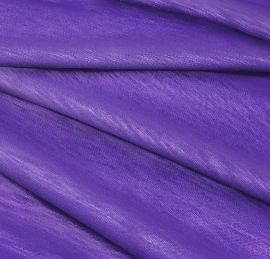 La tela base, Punto Camiseta Jaspeado - Dubái, con una composición del 100% de poliéster y un gramaje de 135 gr/m2, tiene un color liso impreso de morado endrino con un CMYK de 76 81 0 0. Este color secundario simboliza el equilibrio y la sofisticación, y se combina particularmente bien con tonos neutros como el blanco y el gris, así como con otros tonos morados y marrones profundos. El tejido está impreso con el color liso a una sola cara por impresión digital textil, lo que significa que no es un tejido tintado sino impreso por una sola cara.