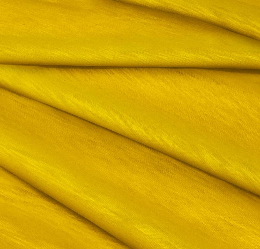 La tela base es el Punto Camiseta Jaspeado - Dubái, una tela de punto compuesta por 100% poliéster, con un gramaje de 135 gr/m2 y un ancho de 160 cm. Su color liso impreso es naranja, con un CMYK de 0 38 95 0, lo que significa que está compuesta principalmente por tintas amarillas y rojas con un toque de magenta. Este color transmite energía, vitalidad y alegría, evocando el fuego del sol y la calidez de los cítricos. Combina especialmente bien con tonos ocres, verdes oscuros, camel y azul oscuro.
