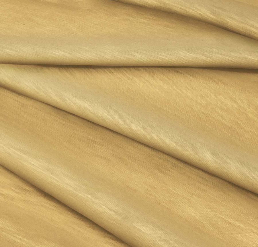 La tela base es Punto Camiseta Jaspeado - Dubái, una tela de punto compuesta por 100% poliéster con un gramaje de 135 gr/m2 y un ancho de 160 cm. El color liso impreso es una mezcla de naranja y dorado, con una combinación de tintas Cyan (10), Magenta (34), Yellow (65) y Black (1), reflejando un CMYK de 10 34 65 1. Este color secundario aporta calidez y luminosidad, y combina bien con tonos neutros como el blanco, gris y negro.