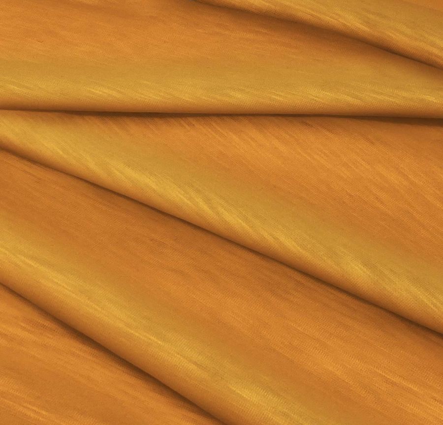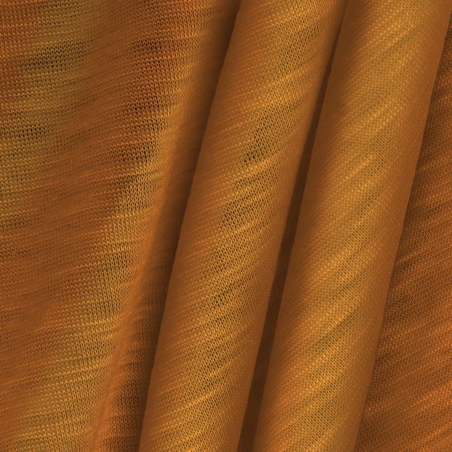 La tela base es la Punto Camiseta Jaspeado - Dubái, una tela de punto de 100% poliéster con un gramaje de 135 gr/m2 y una anchura de 160 cm. El color liso impreso es Naranja-Caqui con un CMYK de 11 61 89 1. Este color secundario combina armoniosamente con marrones, grises y verdes. La tela base está impresa con el color liso a una sola cara por impresión digital textil, lo que le confiere una gran intensidad y fidelidad de color. Las características generales de la tela son su textura y tacto lisos, visualmente translúcida y jaspeada, y elástica. Es ideal para la confección de prendas de punto tanto para mujeres como hombres, especialmente camisetas. Además, es apta para su uso en cualquier época del año. Es importante tener en cuenta que esta tela solo se puede lavar a una temperatura máxima de 30ºC, no es apta para el blanqueo, ni para secar en la secadora ni para limpiar con tricloroetileno. Por último, cabe destacar que esta tela se fabrica mediante la tecnología de sublimación (poliéster), lo que garantiza una alta calidad de impresión y una gran durabilidad de los colores.