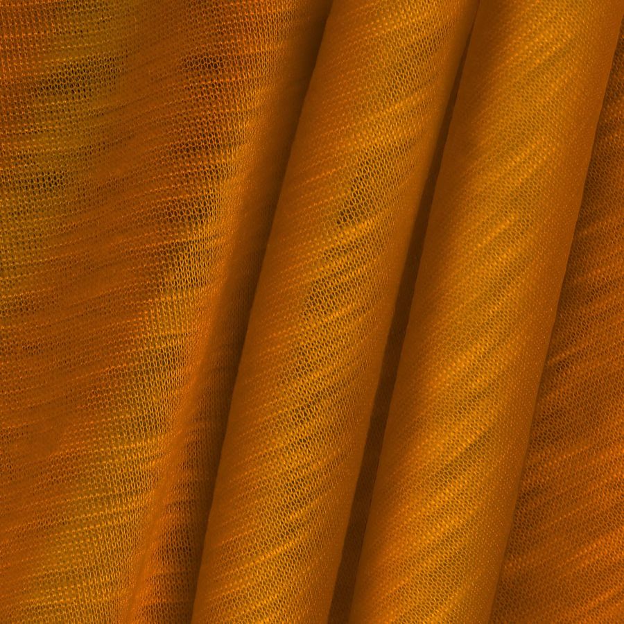 La tela base, Punto Camiseta Jaspeado - Dubái, es una tela de punto con una composición 100% POLIÉSTER y un gramaje de 135 gr/m2, con un ancho de 160 cm. El color liso impreso es de un naranja intenso y representativo de la fuerza de voluntad, con una tonalidad CMYK de 1 65 99 0. Este tono simboliza la energía y la creatividad, y se combina especialmente bien con tonos azul y violeta.
